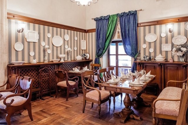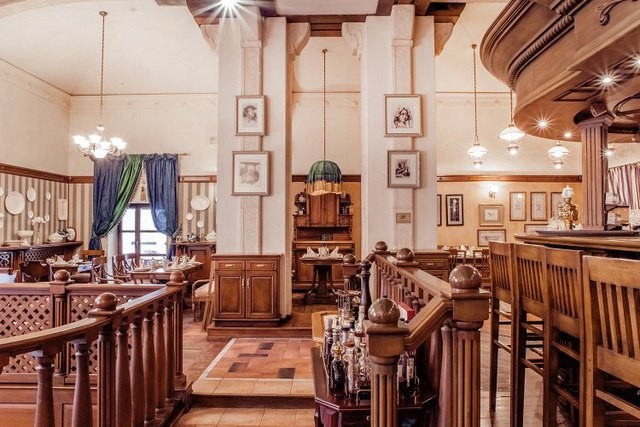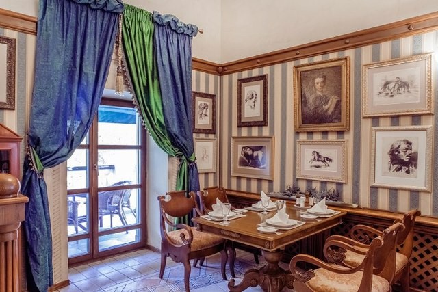 Поднявшись по широкой гулкой лестнице, вы попадете в воссозданный интерьер 19 века. Здесь мы собрали подлинный антиквариат и реплики мебели александровской и николаевской эпох, эскизы учеников Царскосельского лицея, одним из которых, кстати, был Александр Сергеевич Пушкин. У камина поставили глубокие кресла, у стены разместили красивое старинное пианино. В таких интерьерах могли бы жить герои Тургенева и Гончарова, а теперь оказаться на их месте может любой.